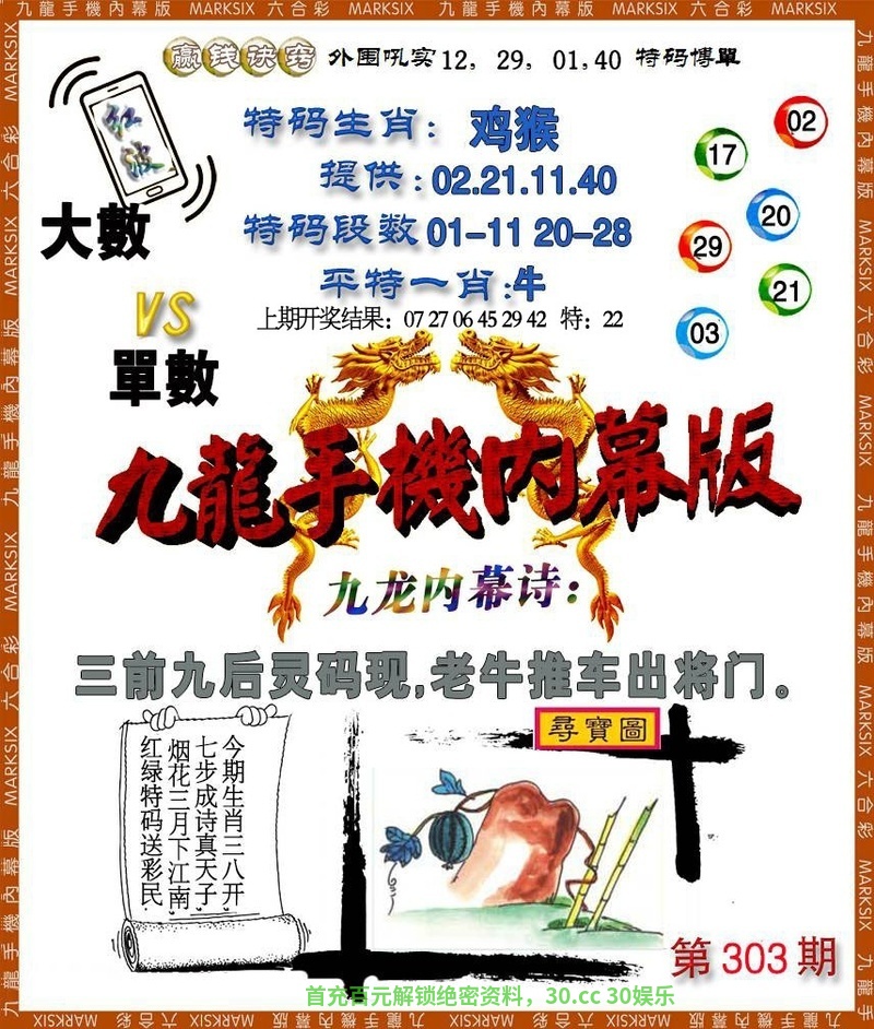 | 303期【③头中特】【0/1/3头】开:兔15准 |